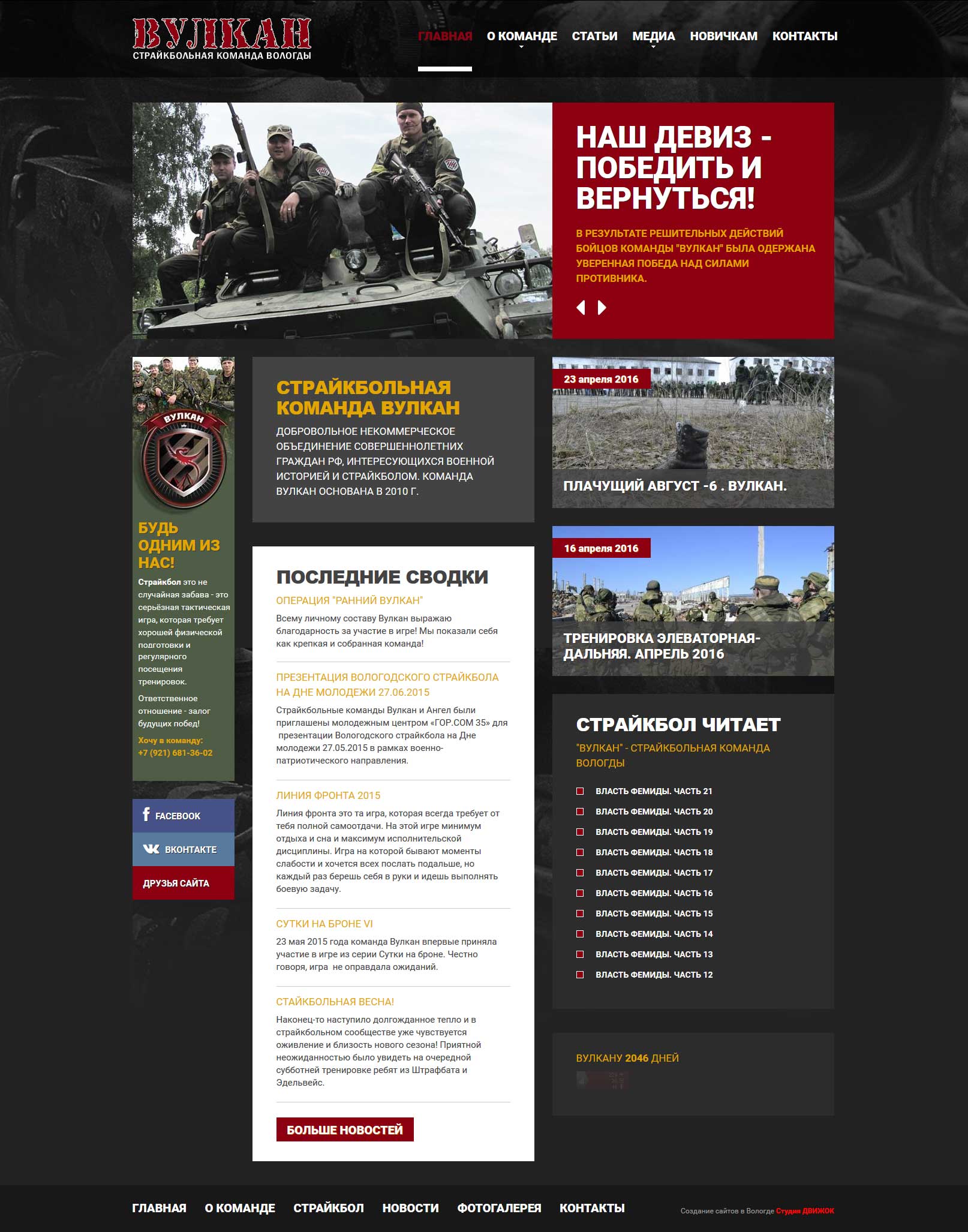 Сайт вологодской страйкбольной команды ВУЛКАН (редизайн)