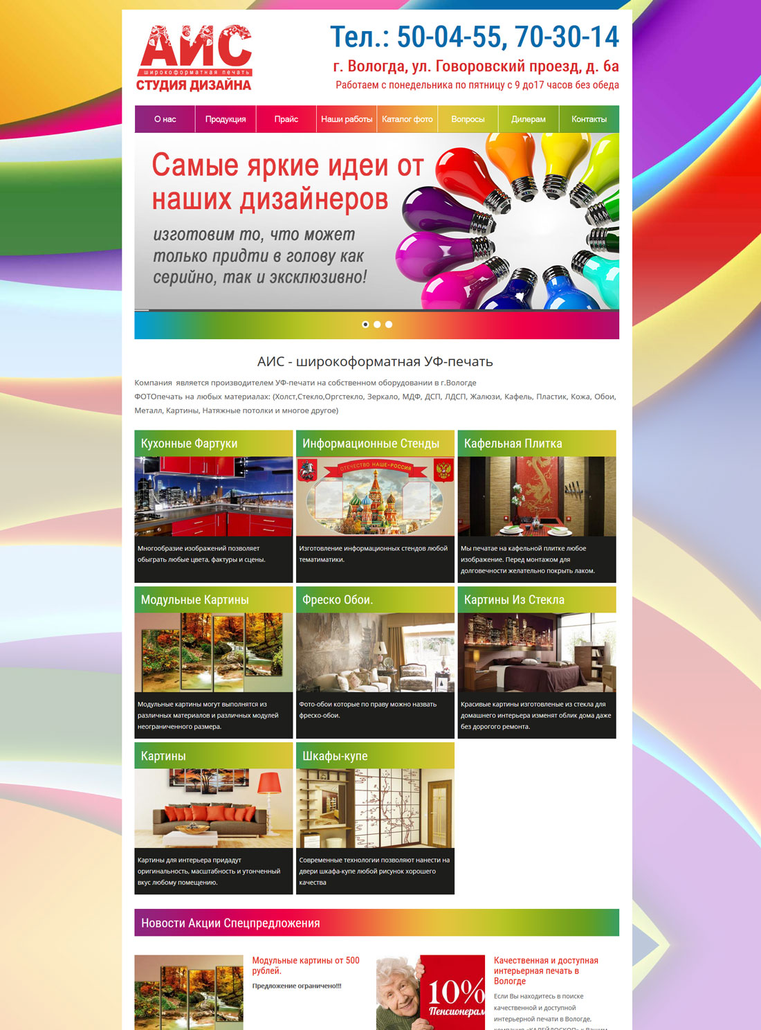 Компания является производителем УФ-печати на собственном оборудовании в г.Вологде