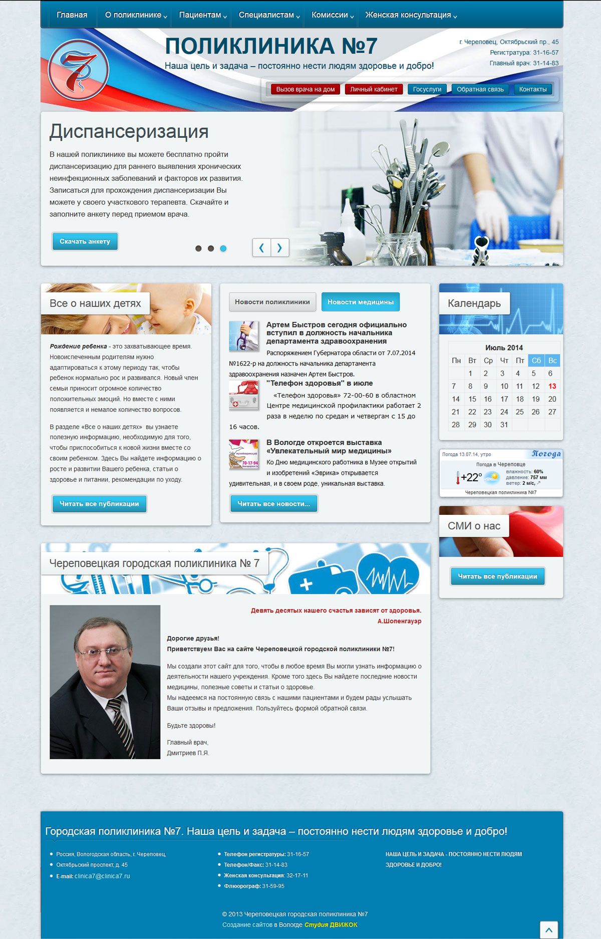 Сайт для городской поликлиники № 7 города Череповец