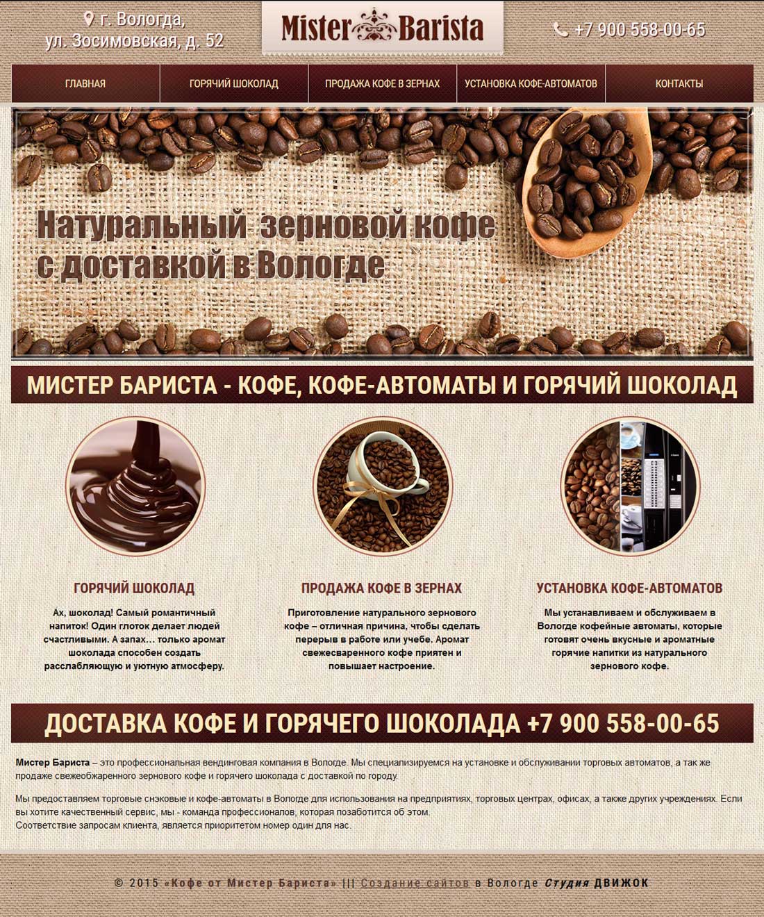 Установка и обслуживание торговых автоматов, а так же продаже свежеобжаренного зернового кофе и горячего шоколада с доставкой по Вологде.